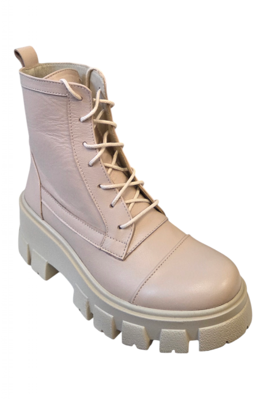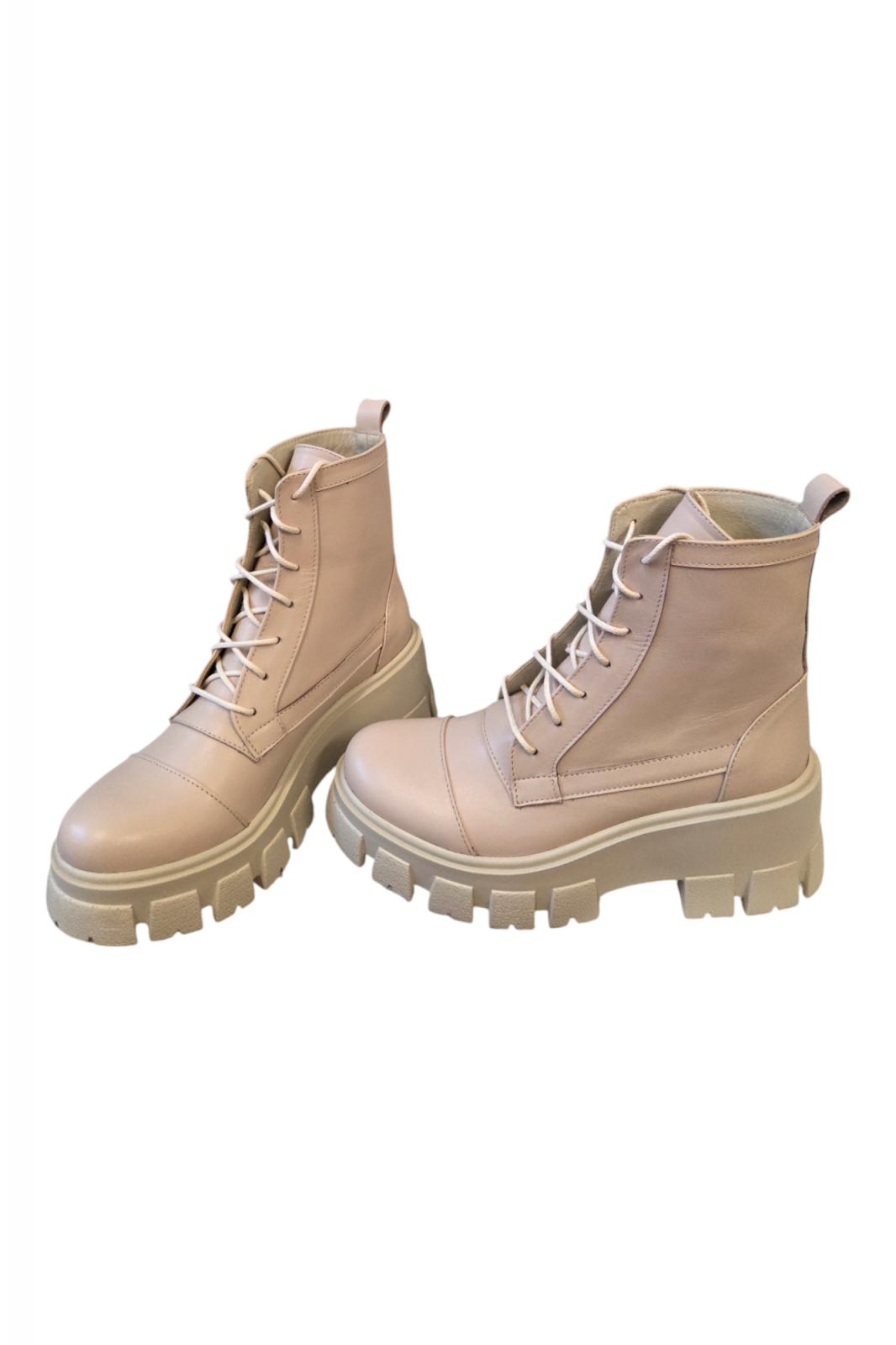 Aceste ghete din piele naturală box, în nuanță bej calm și rafinat, sunt create pentru confortul și versatilitatea zilelor de primăvară și toamnă. Interiorul moale din piele ecologică oferă susținere discretă, iar închiderea cu șireturi adaugă un aer casual, dar îngrijit. Talpa robustă, în ton bej, este prevăzută cu crampoane mari antiderapante — ideală pentru plimbări în oraș sau escapade în natură.