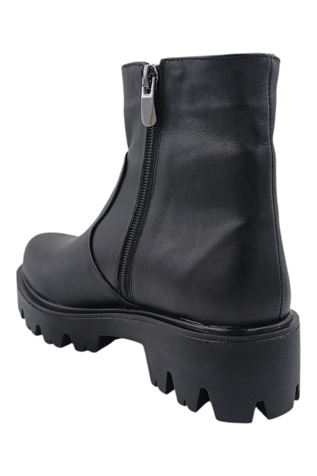 Realizate din piele naturală box, cu un finisaj neted și rafinat, aceste ghete negre aduc un aer sofisticat ținutelor de toamnă, iarnă și primăvară. Interiorul din piele ecologică oferă confort termic, iar fermoarul lateral facilitează închiderea cu ușurință. Talpa ușoară din poliuretan, cu crampoane mari, este antiderapantă și ideală pentru deplasări sigure în sezonul rece, fără a sacrifica stilul.
