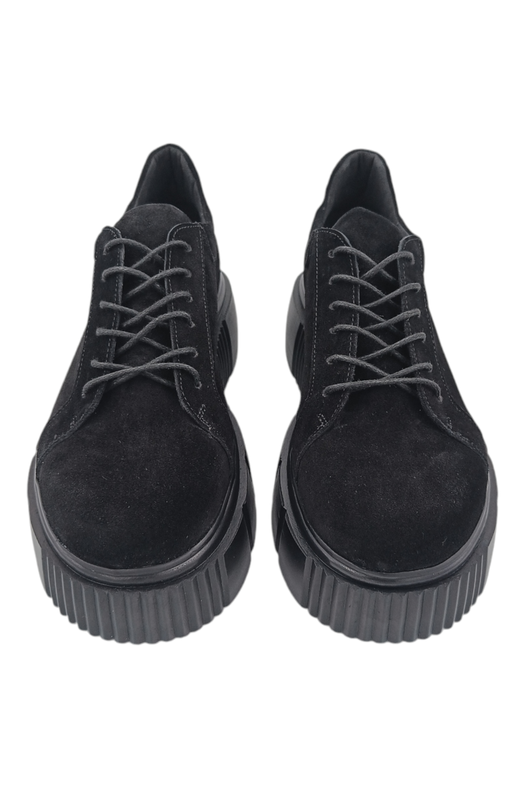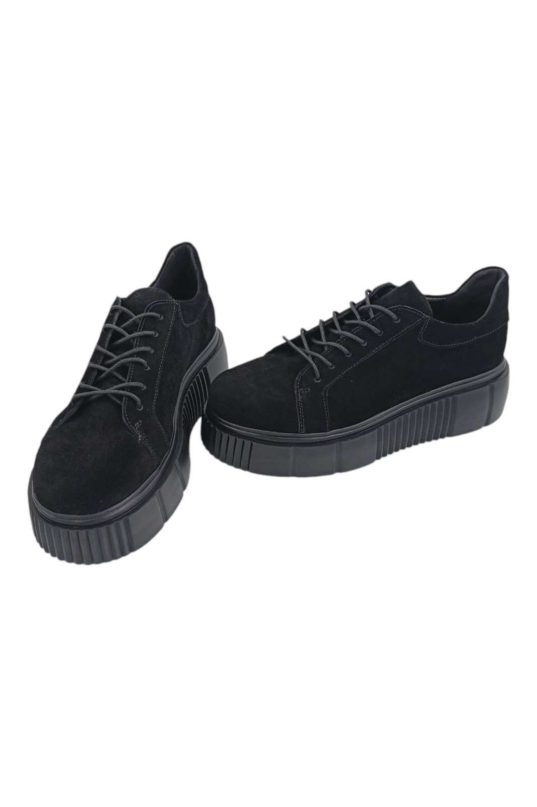 Închiderea cu șireturi negre păstrează estetica monocromă și permite ajustarea perfectă pe picior. Talpa înaltă din poliuretan este surprinzător de ușoară și prevăzută cu profil antiderapant, oferind stabilitate optimă în deplasările urbane din primăvară, vară și toamnă.